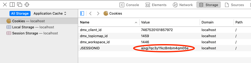 curl -X POST --cookie "JSESSIONID=${sessionid}"