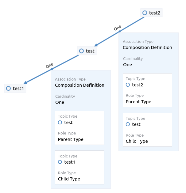 When modelling complex topic type definitions, the Entity must have set the role (Role Type) of Parent Type in the association. Conversely, the simple topic type (e.g. Number, Text, HTML, Boolean) must then play the role (Role Type) of a Child Type in the association. To change the roles of the types in the association, you can “Edit” the respective composition definition.
