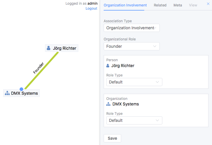 Associate a Person with an Organization. Result is an association of type “Organization Involvement”. That association further qualifies the person-organization relationship by “Role” (e.g. “Founder”, “Employee” …). Note also that you can introduce new roles (“CTO”, “CFO”, …) just by typing in the form (when the association is selected, see screenshot). You’re not required to define any new topic type for that. If a person occupies several roles in the same company create several Organization Involvement associations. If the existing model is not sufficient you can extend it e.g. by adding further child types to the “Organization Involvement” association type and/or to the “Person”/“Organization” topic types.