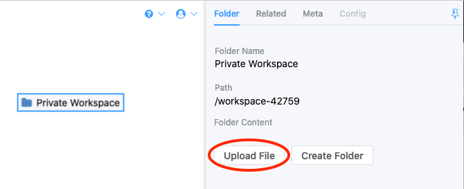To upload a file (to a server-side folder) press “Upload File” in the Detail Panel when a Folder topic is selected:
